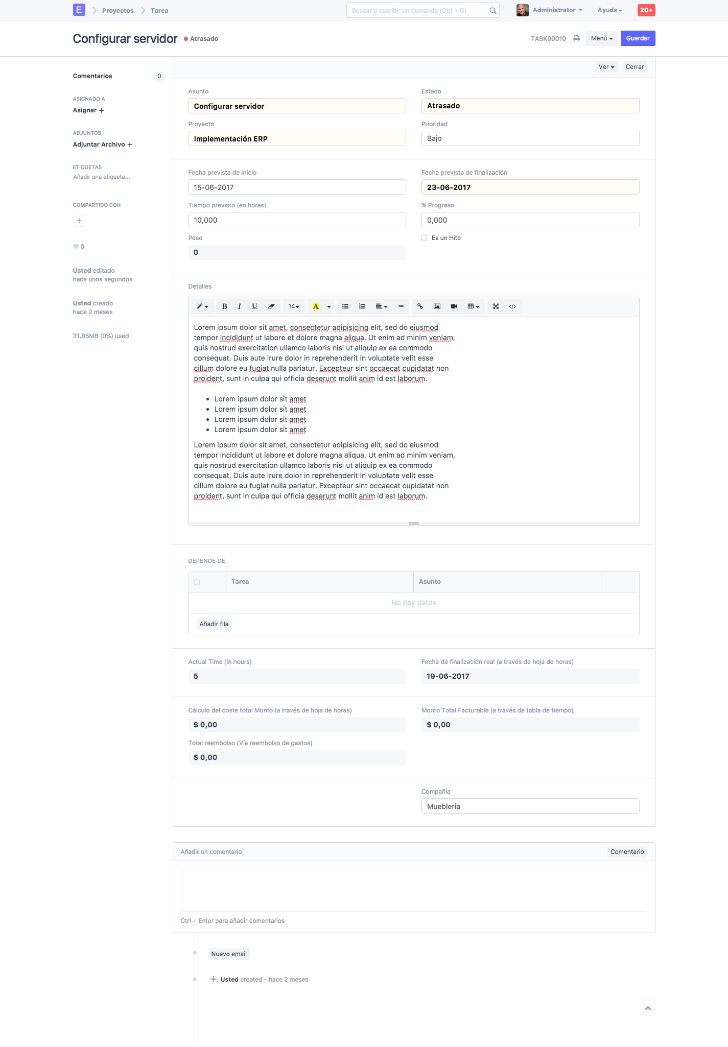 Los proyectos se dividen en tareas. En ERPNext, puede también crear una tarea independiente de un proyecto.