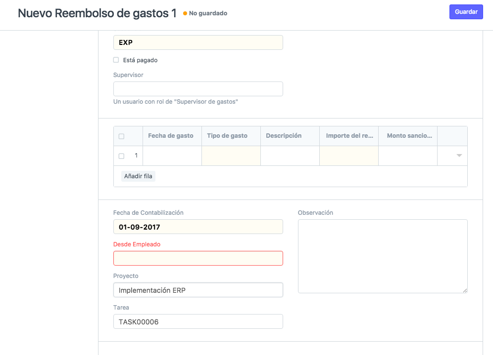 - También puede crearr Reembolsos de Gastos directamente y vincularlos a la Tarea.