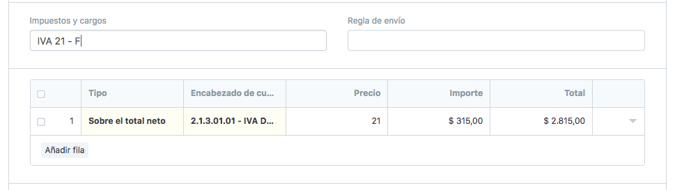 Motivo 2: Se está ingresando un producto con IVA distinto al de la plantilla (si la plantilla por defecto es 21% y el producto es 10,5% por ejemplo) y el tilde de IVA está colocado en la tabla de impuestos correctamente.