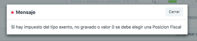Error: Si hay impuesto del tipo exento, no gravado o valor 0 se debe elegir una Posición Fiscal.