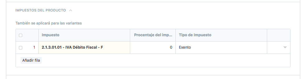 Por ejemplo en esta factura hay IVA que es 0 para el producto BILT, viendo el detalle de impuesto del producto vemos que tiene definido IVA 0% con Tipo de Impuesto Exento.