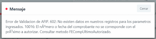 10016: El número o fecha del comprobante no se corresponde con el próximo a autorizar.