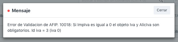 Error 10018: Si ImpIva es igual a 0 el objeto Iva y AlicIva son obligatorios.