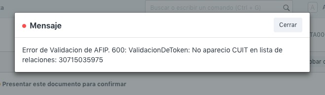 Error 600: ValidacionDeToken: No aparecio CUIT en lista de relaciones: XXXXXXXXX