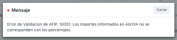 Error 10051: Los importes informados en AlicIVA no se corresponden con los porcentajes.
