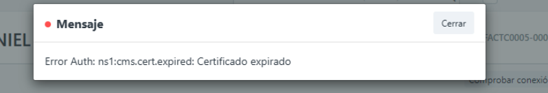 Error Auth: ns1:cms.cert.expired: Certificado expirado