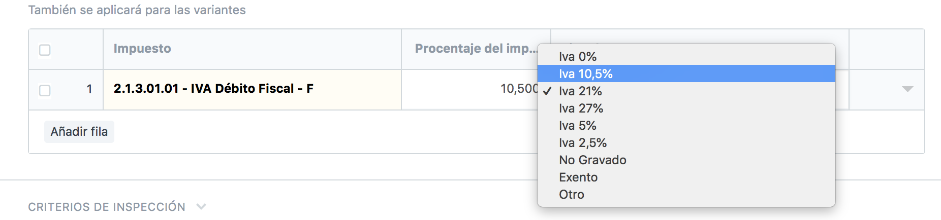 Por ejemplo, si nuestra plantilla predeterminada es del 21%, solo habrá configurarle el iva a todos aquellos productos que sean distintos a este (10.5, 0, exento, etc)